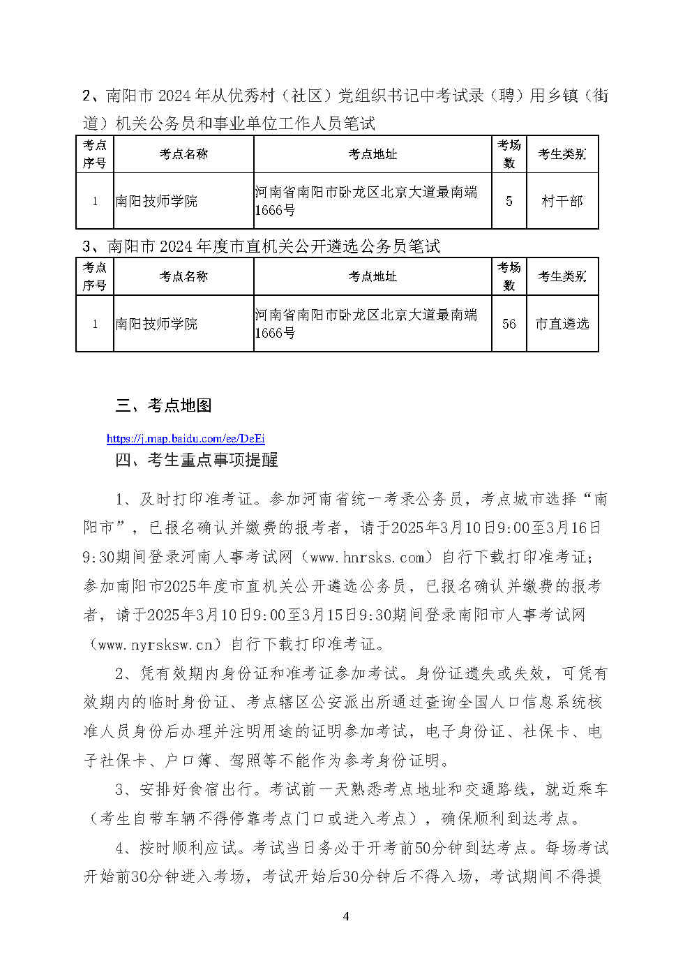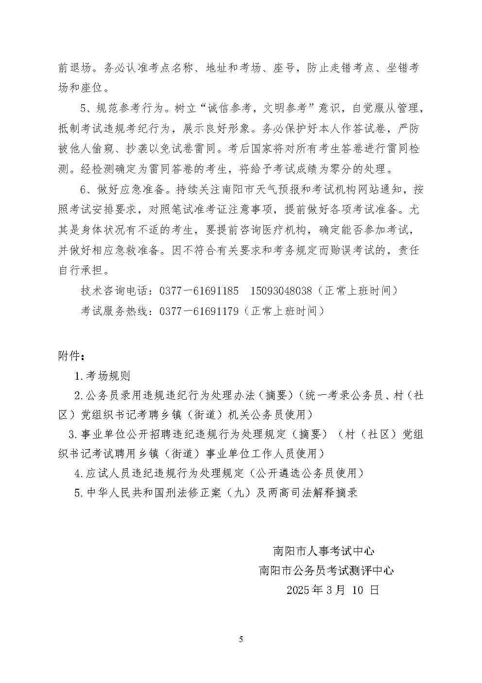 河南省2025年度统一考试录用公务员 南阳考区笔试公告