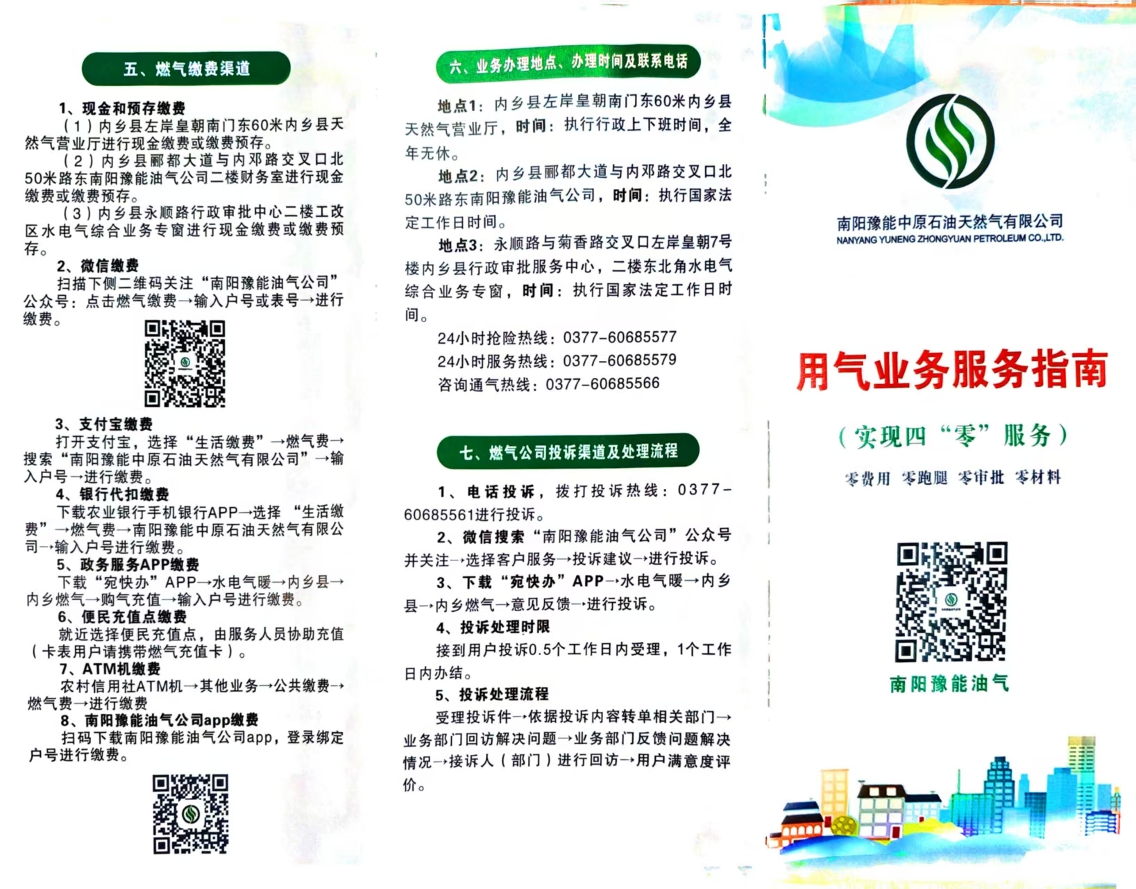 | 燃气更名 | 更名双方身份证、房产证复印件 | 燃气公司各营业网点 | 即时办理 | 0377-60685566 | |